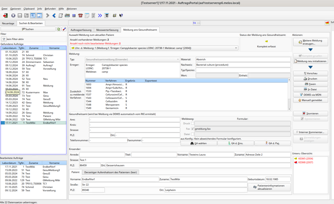 Jeder nach IfSG meldepflichtige Erreger wird einem definierten Erregerprofil zugeordnet. So wird sichergestellt, dass alle Meldungen vollständig, strukturiert und fachlich korrekt übermittelt werden: ein entscheidender Faktor für DEMIS‑Konformität im mikrobiologischen Umfeld.