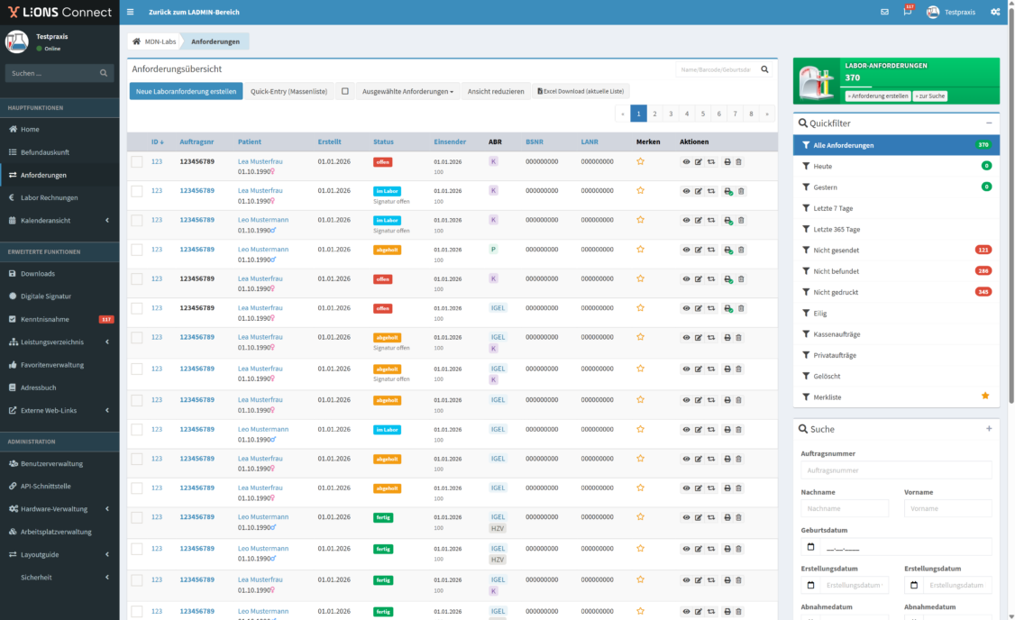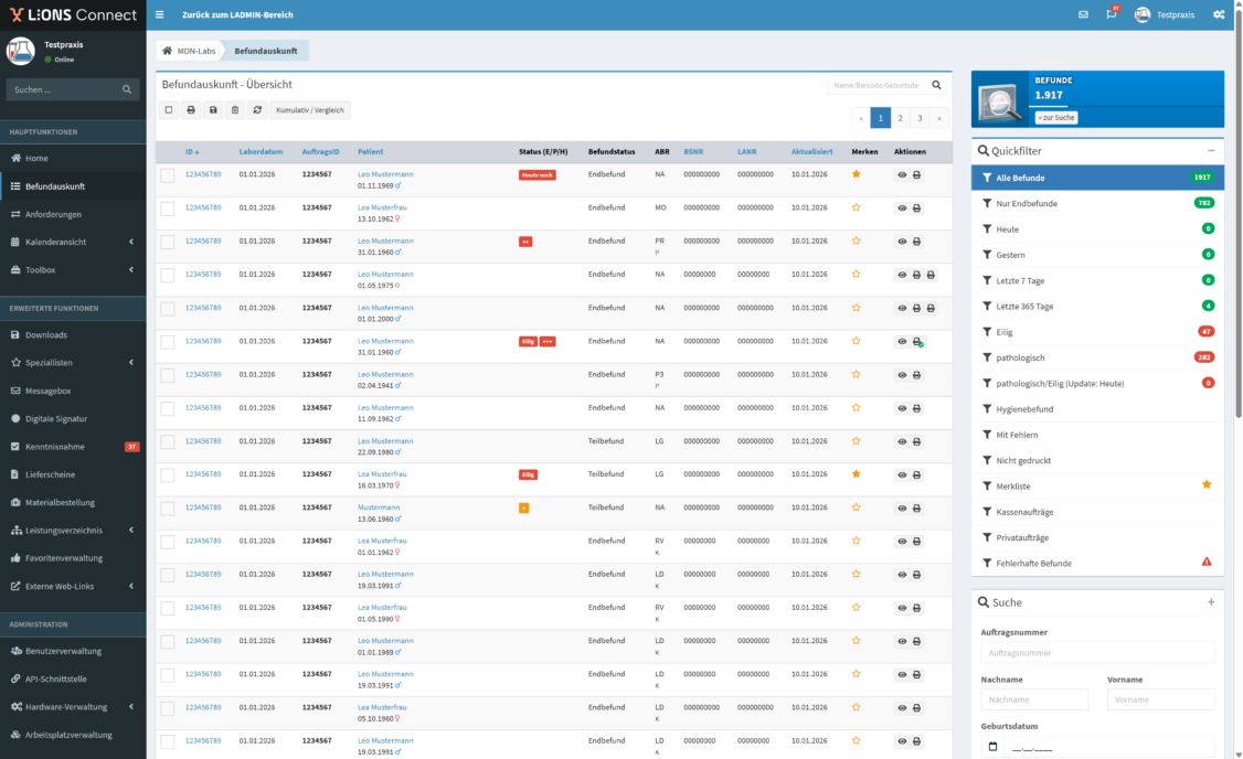 Unser Order-Entry-System unterstützt den Rückimport von Auftrags- und Befunddaten in das Arztinformationssystem (AIS).